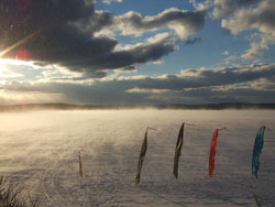Много неприятностей может доставить то, что осталось после деятельности рыбаков (замерзшие кочки от лунок, вмороженные в лед жерди, битое стекло и.т.д.)