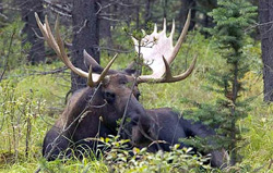 Бывает и так, что обложить лосей удалось, но круг слишком уж велик, иногда до 5 км в диаметре. Тогда охотники могут попытаться аккуратно сузить его. К стаду лосей подойти незамеченным всегда труднее, чем к одинокому животному. Если погода тихая и безветренная, то втроем охотиться удобнее. Один из охотников продвигается в круг, держась поблизости от тропы. Двое других заходят с противоположной стороны круга и начинают подкрадываться к животным. При этом они должны двигаться очень осторожно и часто останавливаться, всматриваясь в каждое деревце или куст. Как только становится возможным, охотники стреляют. Чем точнее они зайдут прямо против направления тропы, тем больше вероятность, что лоси пойдут обратно по своим следам и наткнутся на первого охотника. При ветре, если лоси шли против него, подход меняется. Охотники идут прямо по тропе, отставая друг от друга метров на 100.