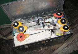 Для перевозки ящика во время зимней рыбалки при необходимости к днищу прикрепляют полозья с загнутыми концами. Заядлые «зимники» обзаводятся особыми складными санками для перевозки рыбацкого инвентаря и наловленной рыбы. Некоторые приспосабливают для этой цели лыжи. Но почти у каждого рыболова имеется ящик, на котором он сидит у лунки и в который складывает рыбу.