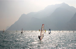 Центром виндсерфинга в Италии считается город Торболе. Здесь утром появляется северный ветер пелер. Он у берега не силён, а вот чуть дальше, с полкилометра, для серфера открывается отличная возможность скользить по волнам. Часа через два ветер стихает, к обеду появляется южный ора и несёт любителя приключений верх и вниз по хорошим волнам. Хотя Италия – страна южная, но гидрокостюм всё же не помешает, ведь температура не дотягивает до 20 градусов, а ветер довольно резкий. Часам к пяти вечера серферский день вместе с ветром заканчивается, можно отдохнуть, посидеть в баре, съездить в Верону, на родину Джульетты, или в Сирмионе, к термальным источникам