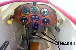 Педали обеспечивают управление планером по курсу. Нажатие на левую педаль (дача левой ноги) приводит к отклонению носа планера влево. Соответственно, дав правую ногу, отклоняем нос планера вправо.