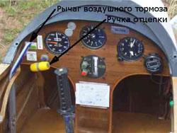 Рычаг воздушного тормоза приводит в действие - угадайте, что? - правильно, воздушный тормоз.Управление воздушным тормозом может быть сблокировано с управлением закрылками или, например, с управлением шасси.