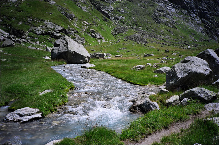 Дальнейший путь спуска проходил по правобережной морене, ее карману и далее по тропе правого берега реки Кундюм-Мижирги.