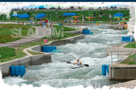 это олимпийский вид спорта, где спортсмены ходят по специально установленных трассах на сравнительно не сложных порожистых реках или искусственных каналах. Главная цель в слаломе - победа, спортсмены состязаются за доли секунд и наименьшая ошибка может стоить победы. Слаломная техника - основа всех видов каякинга.
