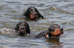 Речь пойдет не о собаках, воспитанных со щенячьего возраста вместе, а о взрослых, ранее в группе не работавших. Вряд ли нужно долго объяснять, почему собаке, проохотившейся вдвоем с хозяином два-три сезона, труднее переходить на коллективную охоту в компании со своими сородичами, нежели наоборот - сменить работу в группе на самостоятельную. Да и самому охотнику, чтобы управиться с двумя и более собаками, требуются особые навыки. Помимо вполне очевидных объективных факторов, большое значение имеет и характер четвероногих помощников: завистник, возможно, и заинтересуется стойкой напарника, но только для того, чтобы увести у него из-под носа дичь; властолюбец и гордец способны отказаться от совместной работы: вдруг, не дай Бог кто подумает, что он кому-то подчиняется; эгоист, не повернув головы, просеменит мимо коллеги, замершего на стойке, поскольку до других ему нет никакого дела. В таких случаях и приходят на помощь разнообразные методы дрессировки, позволяющие ослабить или, напротив, усилить те или иные индивидуальные поведенческие особенности животного. Например, частенько приходится играть на стадном чувстве. При этом достаточно лишь поместить собаку в хорошо выдрессированную группу. Такой педагогический прием очень помог одному из моих друзей: его курцхаар не обращал никакого внимания на застывших в стойке собратьев, но после того, как однажды сеттер - ему ассистировали два других сеттера и еще два лабрадора - "зажал" на его глазах вальдшнепа, он что-то, видимо, понял. И у него, можно сказать, проснулся стадный инстинкт.