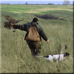 После взлета птицы от собаки обязательно нужно добиваться спокойного поведения, чтобы по команде "лежать" она ложилась, а в случае надобности одергивать ее бечевкой. Подсадной птицей следует пользоваться осторожно, применяя работу по ней не более пяти-шести раз за один выход в поле, иначе собаке надоедают эти уроки. Более того, она может привыкнуть к смирной, небегущей птице, которая после нескольких подъемов станет затаиваться, и в будущем собаке станет трудно справляться с более строгой дичью.