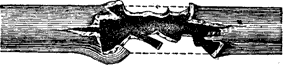 При выстреле стенки ствола, сопротивляясь давлению газов, расширяются. Прочность ствола рассчитывается так, чтобы металл подвергался только упругим деформациям расширения: при давлении газов расширялся, а после прекращения давления принимал свои первоначальные размеры. Если же давление в стволе превысит величину, на которую рассчитана прочность ствола (в данном случае 5500 атм), то наступит остаточная деформация и ствол будет раздут (рис. 98) или даже разорван.