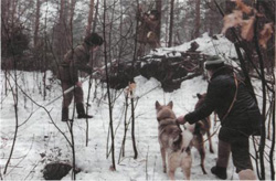 В этой охоте обычно принимают участие 3–4 человека и несколько зверовых лаек. Обязанность собаки – выгнать медведя из берлоги и потом всячески отвлекать его внимание. С хорошо выдрессированной лайкой можно быть уверенным в своей безопасности. Зимой на медведя всегда идут на лыжах, которые снимают в нескольких метрах от берлоги. «Окно» берлоги чаще всего выходит на восток.