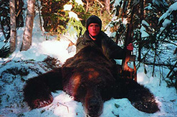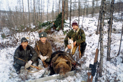 Если медведь был не убит на месте, а только ранен, преследовать его в темноте запрещено категорически. Лучше всего дождаться рассвета и только потом пустить собак по следу зверя. Если собак нет, то на охоту за раненым медведем можно оправляться только в компании, но ни в коем случае не в одиночестве.