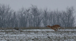 Русак, поднятый с лежки, ведет себя немного иначе. Преследуемый собаками, он идет открытыми местами, используя просеки, опушки, заболоченные места и даже дороги. Русак также ходит кругами, вот только они гораздо больше – 3–5 км. Этот заяц никогда не остается у места лежки, с которого был поднят собаками, и стремится как можно скорее перебраться на другой участок.
