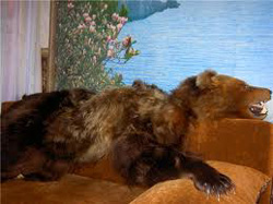 Рога укрепляют на уже готовых основаниях с помощью винтов и шурупов с потайными головками. Для этого в рогах делают ручной дрелью отверстия диаметром 7–8 мм и глубиной 5–6 см. Заливают в них ацетон для обезжиривания, а затем и клей. Когда клей слегка подсохнет, туда вворачивают винты, по длине равные глубине отверстий в рогах и длине пеньков. Все это оставляют сохнуть на сутки. Затем рога насаживают на череп, пропуская винты в отверстия пеньков, и, придав им правильное направление, внутри привинчивают гайкой. Нижнюю, отпиленную часть черепа приклеивают к основанию. Все швы обрабатывают мягкой наждачной бумагой и натирают белым воском. Готовый череп с рогами, практически ничем не отличимый от настоящего, крепится к подставке с помощью проволоки.