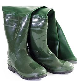При некоторых условиях ловли необходимы резиновые сапоги с голенищами до паха, прикрепляемыми за петли к поясному ремню. Одни рыболовы сами делают удобные сапоги из старых резиновых камер, другие приобретают фирменные изделия — утепленные сапоги, которые имеют верхний слой из неопрена толщиной 5 мм. Специальный ребристый протектор «SUPER THERM» не позволяет сапогам скользить на мокрых камнях