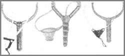Опыт подсказывает, что для прикормки нужны две рогатки: большая и средняя. Большая рогатка — с жесткой воронкой, упругой резинкой, большим мешком — нужна для забрасывания кормушек на большое расстояние. Средняя рогатка — с мягким мешком — для забрасывания белых опарышей, куколок опарышей и конопляного семени. Такая рогатка особенно нужна при ловле рыбы в водоемах с быстрым течением.