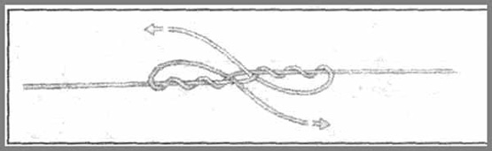 При помощи узла «BLOOD» можно надежно связать две лески.