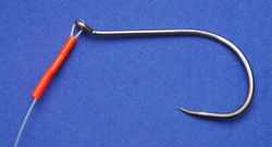 Крючок второго типа — тройник без колечка с почти гладким, несколько спущенным к концу стержнем; тройник наглухо спаян.