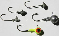 У большинства джиг-головок колечко для лески находится посредине, прямо над центром тяжести, т. е. изгиб цевья крючка у колечка составляет прямой угол.