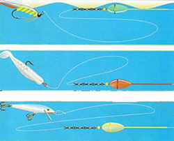 Здесь пригодны только воблеры с нейтральной плавучестью и плавающие воблеры с небольшой пластиной, расположенной под близким к прямому углом (цветн. рис. 59).