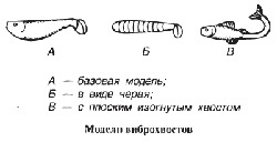 Более значительные перемены произошли с виброхвостами. Введение в конструкцию приманки дополнительных элементов в виде играющего спинного плавника и выступающих ребер значительно облегчило игру приманки и увеличило ее долговечность. Созданы новые модификации, в которых колебания приманки вызываются не хвостом, а специальными выступами на теле.