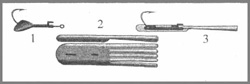 . Приманка «летающая рыбка»: 1 — свинцовое грузило; 2 — пластиковая приманка; 3 — приманка в сборе