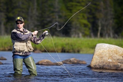 Тренироваться забросам следует на сухом берегу, привязав вместо мушки кусочек марли.