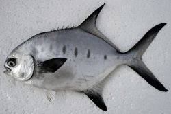 Трахинот (Trachinotus glaucus) — обитает в субтропической и тропической зонах восточной и западной частей Атлантического океана и в Средиземном море. Он отличается очень длинными первыми лучами мягкого спинного и анального плавников. Окраска спины темно-синяя. Бока золотистые с четырьмя вертикальными черными полосами. Второй спинной и анальный плавники черные. Достигает синий трахинот длины 30 см. Предпочитает держаться на мелководьях, в заливах и эстуариях в непосредственной близости от берегов. Питается преимущественно бентическими беспозвоночными, в незначительных количествах рыбой. Добывается ставными и закидными неводами, реже на крючки. В Западной Атлантике основной сезон промысла приходится на осеннее и зимнее время.