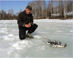 Ловля в озере.
