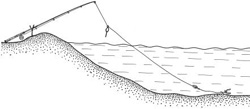 После того как удочка заброшена ее можно или держать в руке или можно положить на специальную подставку так чтобы вершина удочки находилась на пару сантиметров от воды. Как только рыба начинает поклевку, то она натягивает леску, выравнивает ее и поплавок начинает тонуть. Такая удочка несильно чувствительна к первым легким поклевкам, но она по сравнению с донной удочкой лучше показывает поклевку. У придонной удочки есть возможность повысить чувствительность, для этого нужно между кончиком удилища и поплавком прицепить грузик, чтобы притопить немного леску с поплавком. При ловле рыбы в ветреную погоду такой противовес очень пригодится. Он покажет, даже если будет очень слабая поклевка. Если вы ловите в тихую погоду, то удочку можно расположить так чтобы кончик удилища находился над водой чуть выше. Поплавок будет висеть над водой, и будет выполнять функцию сторожка. Прямое предназначение полудонки ловля рыбы на водоемах с быстрым течением.