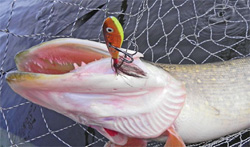 С плетней мельчить не стоит. Такое сечение, как 0,28–0,3 мм – самое оно. Иногда при зацепах можно разогнуть крюк и тем самым спасти приманку. Следует помнить еще и то, что поклевки сомов на бокоплавы не редкость. В местах, где вероятность зацепа невелика, можно использовать более тонкую и менее парусящюю плетенку. Например, мне доводилось с плетенкой 0,14 мм успешно ловить берша на «Кобру» весом 12 г.