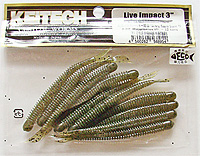 В ассортименте японской компании Keitech классических червей, по сути дела, и нет – все, что представлено в каталогах, можно считать лишь «вариациями на тему». Полноценный силиконовый червь – это все-таки пассивная червеобразная приманка с вытянутым и тонким телом без каких-либо дополнительных элементов. Продукцию же Keitech можно отнести, скорее, к слагам – тоже пассивным приманкам, но уже более «упитанным». Единственным приближающимся к классике представителем в ассортименте Keitech является как раз Live Impact – эдакий толстый червячок с рыбьим хвостиком, весьма привлекательный для нашей рыбы, хотя изначально приманка предназначалась для ловли басса.