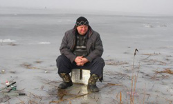 После обеда поднялся ветерок, заметно похолодало. Мы со Славкой снова уселись на свои рыбацкие ящики у пробуренных лунок. Серега задержался, чтобы убрать все в доме и машину подготовить к отъезду. Клев стал хуже, за полчаса вытащили по два небольших окунька. Подошел Серега, неся на плече свой рыбацкий ящик, молча взял ледобур и пошел от нас подальше, ближе к берегу.