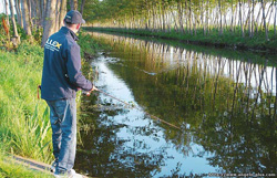На местах с тихим, ровным течением ловятся подъязики, плотва, окунь и густера поплавочными удочками, а еще лучше в проводку и донными удочками. При ловле поплавочным ми и донными удочками иногда следует вызывать рыбу на решительные действия при слабых поклевках. Лесу плавно подтягивают на 5—8 см и снова отпускают, а через 2—3 с подсекают. Особенно эффективен этот прием при ловле на пиявку, веретенку и выползка, сопротивление которых вызывает более решительные поклевки.