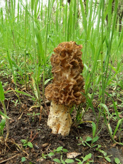 Я аж воскликнул от радости и неожиданности, когда прямо под ногами на тропинке увидел россыпи сморчка полусвободного (Morchella semilibera)! В прошлом году мы его собирали, но был он мелок и низок. А тут сморчки возвышались сантиметров на 10. Я опять пожалел, что открываю сезон в одиночку - не с кем было разделить радость! Тем более, что рядом со мной стояла уже доверху наполненная корзина.