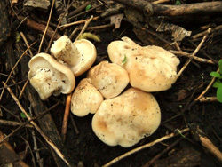 Итак, сезон я открыл и домой вернулся с небольшим, зато свежим весенним урожаем. Через день я опять посетил прежние места. Дожди прошли ещё. И грибы не замедлили откликнуться! Проклюнулись рядовки майские Calocybe gambosa на некоторых грибницах. Ещё совсем мелкие, но отдельные экземпляры уже можно было брать. Также стали проклёвываться пестрецы Polyporus squamosus. Продолжали плодоносить синеножки и знакомые "незнакомые" энтоломы. А сморчка опять ни одного! Мистика! Уже и черёмуха зацвела, и смородина золотистая, и почти все плодовые деревья - сморчок должен быть по всем признакам! А его не было! Вести из прилегающих районов подтверждали, что и там сморчка мало, в изобилии сморчковая шапочка, но в Кумже она не встречалась пока.