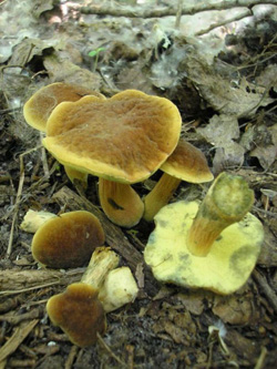 А 22 ноября состоялась первая репетиция совместного закрытия сезона на Нижнем Дону. Нас было всего трое (Я, Борис и Дмитрий), что для начала вполне нормально. Закрытие сезона решили провести в Щепкинском заказнике, где толком никто из нас не был. Характер леса там другой, нежели в Кумже (есть сосновые и смешанные посадки). Этот поход подробно был описан в отчёте "Лиха беда начало...". Здесь скажу только, что в результате были открыты новые виды - галерина окаймлённая (Galerina marginata) скорее всего, и рядовка рыжая (Lepista inversa) - точно. А также там было большее разнообразие трутовиков, нежели в Кумже.