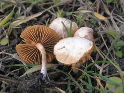 Но не только на деревьях были грибы! На лугу между двумя рощами росли мелкие грибочки, которые я видел ещё перед морозами. Казалось, что время над ними не властно: они перенесли снег и морозы, шляпки у них поседели... Или это мне только так кажется? Шляпки диаметром до 2,5 см, пластинки табачного цвета, ножка полая, запах приятный. Тубария?