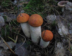 Несколько слов о редких подосиновиках белых (Leccinum percandidum Watling), занесенных в Красную Книгу. Вначале я подумал о редкой случайности, позволившей, при благоприятных погодных условиях, дать удивительный для этого вида урожай. Однако брат разубедил меня, рассказав, что находка трех-шести белых осиновиков в течение дневного сбора является обычной нормой, и в прошлом году, и в позапрошлом, и десять лет назад подосиновики белые встречались не реже. Попадались они нам в разных местах, на высотке возле реки более редко, а в березняках возле озера достаточно часто, там же была сделана фотография белой тройки. Эти обстоятельства позволяют сделать вывод, что вид Leccinum percandidum Watling достаточно распространен в лесах Лангепаского района Западной Сибири. Также отмечу, что найденные нами грибы достаточно сильно отличались от подберезовиков белых - Leccinum holopus, прежде всего размерами, цветом мякоти и строением ножки, особенно у молодых грибов. Кстати, подберезовика белого не было найдено ни одного, а вот черноголовые попадались.