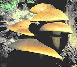А под конец у основания старого сухого тополевого пня бросились в глаза гимнопилы. Не зря их ещё огнёвкой называют. Не заметить их было невозможно. Это был гимнопил яркий, или видный, или Юноны – всё синонимы: Gymnopilus junonius или spectabilis. Эти гимнопилы я не первый год встречаю на одном и том же месте.
