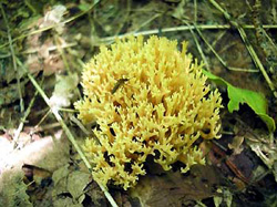 А ещё на листве словно разбросал кто-то созревшие звёздовики - Geastrum pectinatum. Изредка попадались кораллы рамарии жёлтой - Ramaria flava.