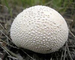 Вдоль дорожки, ведущей к роще, высыпали белые шарики мелких дождевиков. После более детального рассмотрения я их обозначил как Дождевик луговой (Lycoperdon pratence). Хотя многие молодые дождевики похожи друг на друга. Поэтому за точность определения не ручаюсь.
