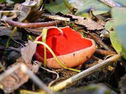 А вот через неделю, 29 апреля, идти было гораздо грязнее, но зато я нашел грибы! Как и обычно, в этом году первыми были Саркосцифы. И было их весьма не мало – несколько десятков, в различных фазах роста.