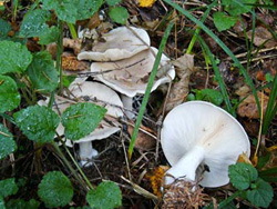 И в пятницу (08.10) с утра рванул в лес. Опять наступил на те же грабли – приехал к лесу в 7.15. Темно – пришлось с полчаса погулять по опушке. Грибов набрал немного: по маслятным местам кто-то прошёлся в выходные, а растут они сейчас очень медленно – всего пять маслят лиственничных и нашёл, да волнушек штук 30, ещё пару гриб-зонтиков пёстрых. Ну и говорушек серых набрал с ведро примерно – решил по-следовать совету и попробовать их замариновать.