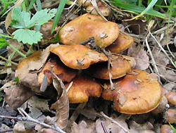 Чем менее "грибными" являются места, тем больше странностей и чудачеств демонстрируют нам объекты нашего пристрастия. Непроезжая лесная дорога, прямая как стрела, отличается большим грибным разнообразием, чем лесной массив как справа, так и слева. (Справа - сырой липовый лес, слева - сухой березовый, никаких грибов не было и нет ни справа, ни слева.) На сей раз дорога порадовала нас двумя (!) видами черноспоровых грибов.