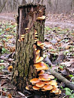 Лучше всего грибы растут от мицелия гриба, который взят из полуразрушенных пней, на которых растут опята. Кусочки древесины из этих пней нужно брать с тех участков мицелия, на которых растет много плодовых тел. Эти кусочки затем прибивают гвоздями к пням, на которых вы хотите вырастить опята. Чтобы древесина не высыхала, ее закрывают кусочками мха или ели. Через 2 года после заражения мицелием появляется первый урожай плодовых тел опят.