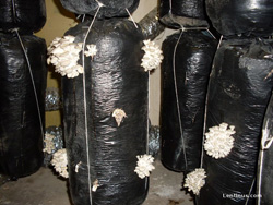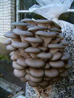 Если для выращивания грибов используются полиэтиленовые мешки, то перед плодоношением субстрат можно вынимать из них. Плодовые тела, в этом случае, располагаются не только на верхней части, но и на боковых, и площадь их распространения тем самым увеличивается. Однако обдуваемый воздушными массами субстрат будет быстро терять влажность, что потребует дополнительных мер по ее возобновлению (поверхность субстрата следует часто окатывать водой).