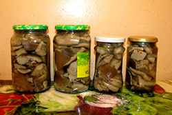 Затем грибы охлаждают, быстро упаковывают в банки и заливают маринадом. Для приготовления грибного порошка шампиньоны разрезают на кусочки, высушивают и тщательно измельчают в кофемолке. Хранить порошок следует в сухом помещении в банках или пакетах. Перед приготовлением порошок нужно смешать с водой и дать ему набухнуть, а затем проварить в течении 10 минут. Так же порошок используют в качестве приправы к различным блюдам.