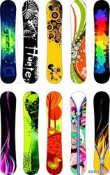Пожалуйста, извольте. Кастомный дизайн вашего горного снаряда. Сотворив со своей доской такую штуку – редизайн, например, – будьте на 100 процентов уверены: от заинтересованных взглядов будет просто некуда скрыться. И геометрию вовсе трогать и не надо. Это штука тонкая, просчитанная, вмешательство в которую может привести к тому, что в течение длительного времени Вы будете лицезреть не заснеженные склоны, а потолок больничной палаты. Кроме того, изменения геометрии видны с очень близкого расстояния, да и то не всем, а исключительно тем 0,5%, кои знают, какая она должна быть .-) Другое дело - краска и рисунок.