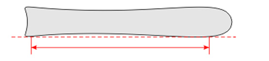 Эффективная длина канта (Effective Edge) [контактная длинна канта] – та часть канта которая непосредственно контактирует со снегом во время катания. Зоны канта в области носа и хвоста доски как правило не контактируют со снегом. Эффективная длина канта отвечает в первую очередь за сцепление со снегом. Чем большая контактная длинна, тем более цепкой будет доска, тем более стабильно она будет вести себя на высоких скоростях.
