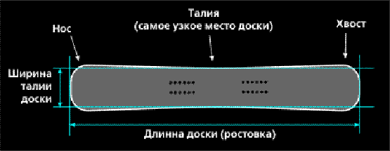Размер доски (ростовка) - это её длинна от носа до хвоста. Измеряется в сантиметрах. Наряду с обычными размерами 150, 160, 165 и т.д., встречаются размеры со знаком плюс (161+, 166+ и т. д.) это означает что данная модель имеет более широкую талию по отношению к длинне доски и расчитана на более тяжелого райдера или же райдера с большим размером ноги.