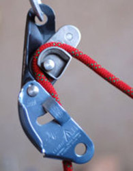 Страховочно-спусковое устройство – служит, собственно, для осуществления верхней или нижней страховки. С помощью карабина пристегивается к обвязке страхующего и создает трение, необходимое для того, чтобы без приложения большого усилия (или вообще без приложения усилий, например, в случае с гри-гри) остановить падение напарника при срыве и благополучно спустить его на землю.
