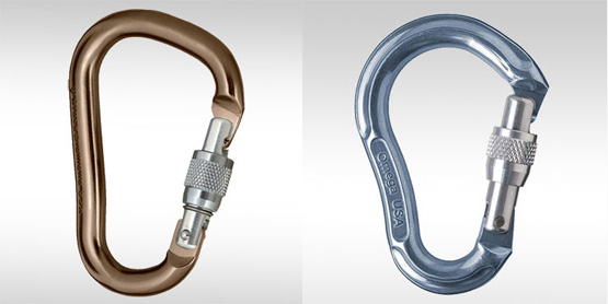 До сих пор популярны и титановые карабины – “Ирбис”. По своим характеристикам они занимают промежуточное положение между сталью и алюминием. Есть существенный недостаток: при повреждении поверхности карабина, он становится не пригодным. Кроме того, через него нельзя быстро протравливать веревку (например, быстро спускаться) – теплопроводность у титана меньше, очень легко поплавить веревку.